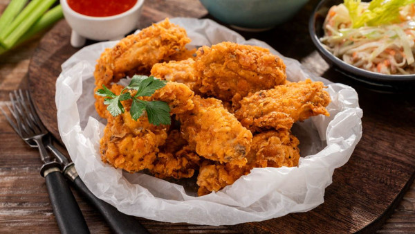 Lehce pikantní obalovaná kuřecí křídla s česnekovým dipem